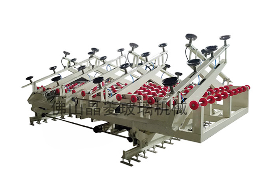 主要用於玻璃的自動取片(piàn)。將玻璃放在指定位置,給出取片信號後,取片吸(xī)盤自動翻起並將玻璃吸附後放置在取片(piàn)台傳送輥道上,自動將玻璃輸送到切割機主機上。